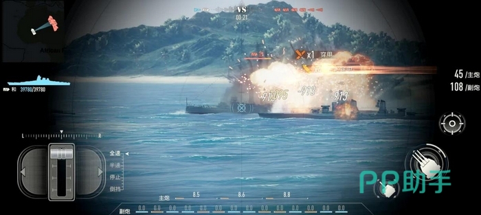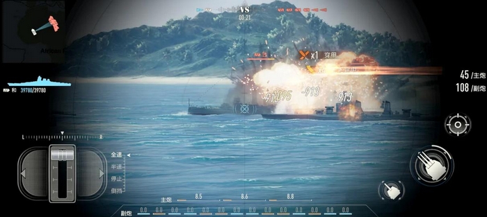 射击精度依赖动态预判能力。游戏未设置锁定瞬击机制,所有火力投送均需计算目标航速与航行轨迹。静止目标可直接瞄准舰体中心,而移动目标必须预留提前量——该数值由目标速度、射程距离及弹道飞行时间共同决定,需通过大量实战积累形成肌肉记忆与空间直觉。