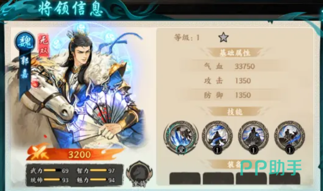 郭嘉是典型的控制型谋士,技能体系与“寒冰”状态高度契合,具备出色的控场能力。“地泉鲸浪”技能会对敌方所有主将发动攻击,并对已处于寒冰状态的目标有60%概率触发3秒冰冻,使其完全丧失行动能力;