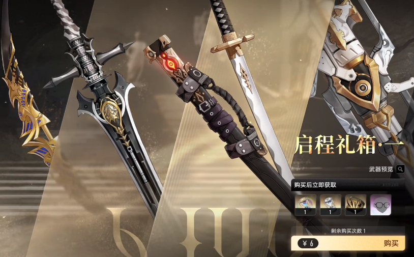 商店内另设启程礼箱,售价6元,包含两个沙漏、一把限定武器以及一个专属镜框装饰。所获沙漏可用于参与特殊活动中的“寻觅”玩法:单次使用一个沙漏进行一次寻觅,累积10次必得紫色及以上品质道具,达到90次则可获得金色品质奖励。除此之外,玩家也可直接购买装备或角色碎片,集齐指定数量碎片即可激活新角色,拓展队伍配置。