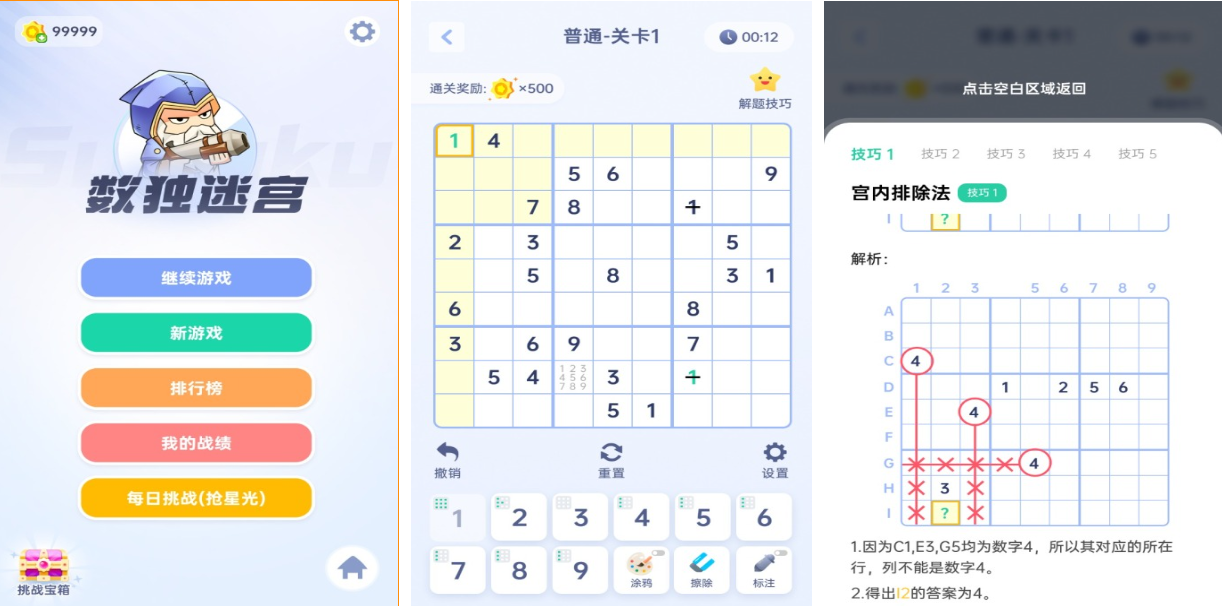 本作也是款需要大家开动脑筋体验的数独闯关作品,你可以在屏幕下方挑选数字填充于表格中,各种主题背景和复杂任务更具耐玩性,上手容易也可快速领悟数独的一系列规则,简单UI呈现的美术也可提供不俗视觉享受,整体交互性高能让大家跟数独谜题进行互动,如果你自认为是天下无敌的数独游戏高手,那么我数独贼6这款满分数独手游你别错过。