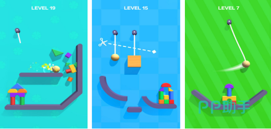 清新简洁的画风,悦耳又动听的背景音乐,让整款游戏的节奏感更加强悍。其中涵盖的关卡内容特别丰富,每个关卡中的要求和操作方式都完全不同,在没有时间限制的情况之下,玩家只要通过滑动屏幕,就能将牵着小球的绳子彻底割断,以此让小球击中积木,就能顺利完成闯关,游戏比较考验玩家的反应能力以及掌握的力度。