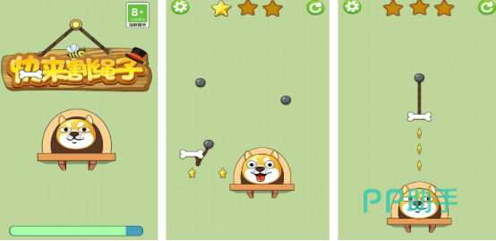 治愈性极强的画风,还传承了经典的割绳子玩法,但是从故事背景上来看还有一些差距,这款游戏主要讲述的就是饥饿的小狗狗,看到挂在绳子上的骨头,饥肠辘辘,但是因为骨头的分布位置完全不同,狗狗无法通过直接跳跃的方式吃到骨头,因此玩家要通过发挥策略头脑,仔细观察的方式将绳子割掉,让狗狗成功吃到骨头,就能获得相应的星星。