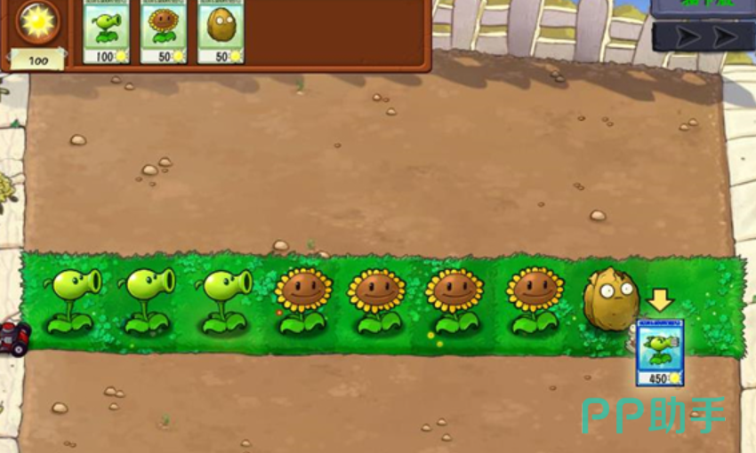 在冒险模式的前十个关卡之中,玩家实际上并不需要特别针对性地进行策略排布,由于出现的僵尸数量不多, 能够玩家进行搭建的植物基建种类是足够的,所以在前十个关卡内,玩家只需要携带豌豆射手、向日葵、坚果,就可以完成战斗了。