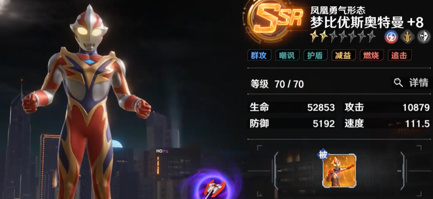 在银河系广阔无垠的星域中,一位源自信念之焰、浴火重生的金色战士正守护着光与正义的边界——他就是梦比优斯奥特曼的凤凰勇者形态。作为高策略性技巧型角色,凤凰勇者以勇气层数管理为核心驱动,依托凤凰标记与灼烧联动机制,在战斗初期即可构建稳定压制节奏,为团队争取关键先手优势。