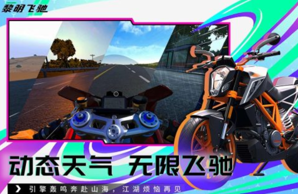 黎明飞驰是一个非常硬核的竞速游戏,里面主打的是摩托车竞速,玩家会在各种真实的动态天气下,驾驶摩托车不断驰骋,这些摩托车的选择是相对比较自由的,上百款车型随意挑选,零部件和颜色还能自由更换,在驾驶过程中,天气和周围的场景都是动态呈现的,这更能让玩家有一种真的在现实生活中驾驶摩托车四处穿梭的代入感。