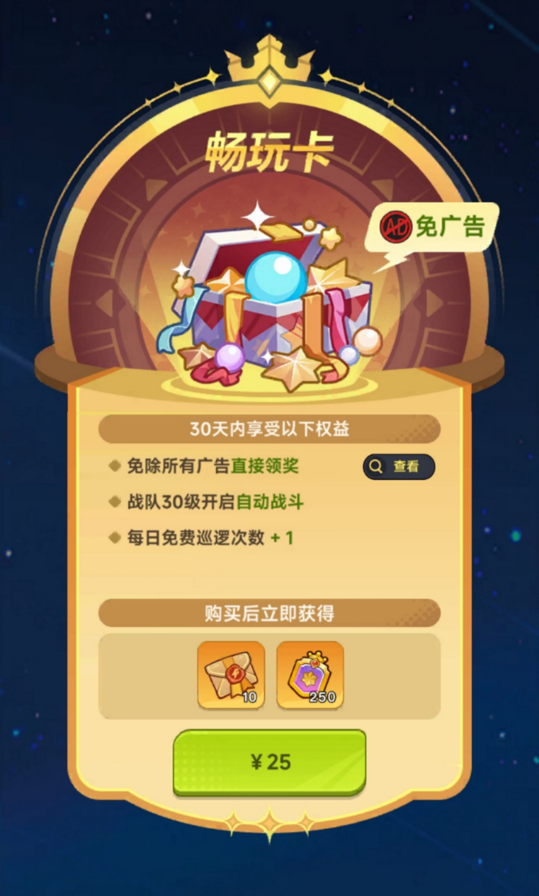 除首充礼包外,“畅玩卡”亦是新区必备配置——开通后可全程跳过广告,保障流畅操作体验;同时持续激活资源自动产出机制,实现收益不中断。VIP1与VIP2等级礼包则定位入门级高回报组合,内含强化材料、体力补给及稀有卡牌碎片,综合性价比突出。