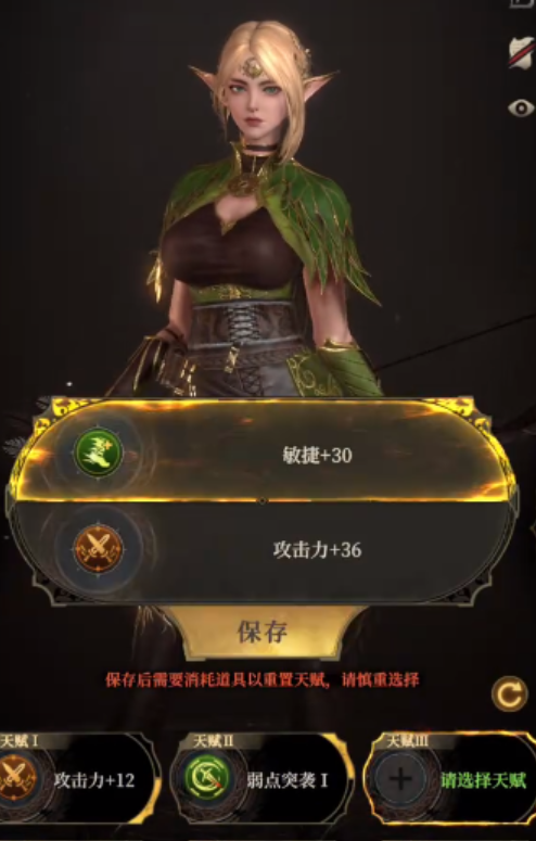 在天赋系统的构建上,玩家可根据战术需求选择不同的成长路径:偏重输出路线可最大化伤害潜力,而侧重生存的配置则提升战场持久力。角色达到10级时,建议优先投资生命值与破甲属性,以增强前期清怪效率和抗压能力。进入30级阶段后,左侧天赋可延长“轻盈之姿”的触发次数,右侧则强化攻击速度,影响输出节奏的流畅度。中期60级是关键节点,此时应重点提升敏捷与暴击率——前者直接影响基础伤害,后者则决定技能爆发的稳定性,对整体战力有显著影响。