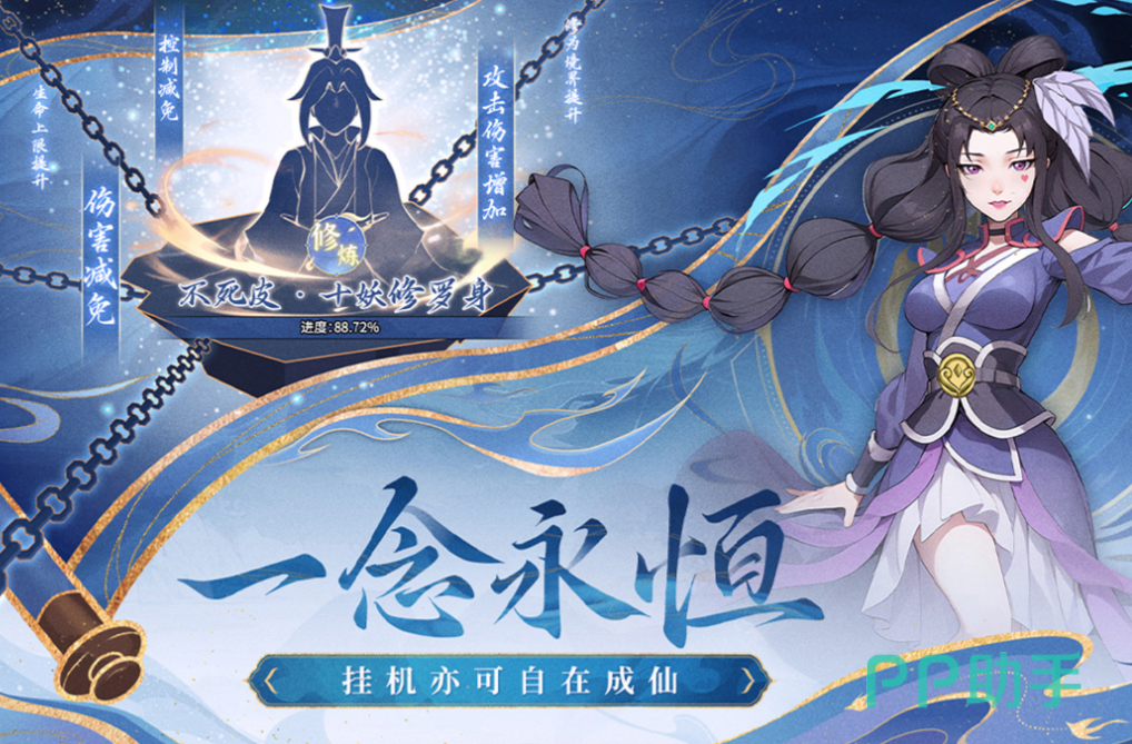 这是改编自高人气动漫一念永恒的国风卡牌游戏,将挂机操作与玄幻卡牌元素进行结合,反套路的爆笑剧情让一念永恒的粉丝念念不忘,各种可以抽卡的活动和福利让大家获得了好东西,挂机抽卡即可成仙的理念轻松上手,中式美术风格打造的仙侠背景也别具一格,这款能满足所有玩家修真梦的卡牌作品你别错过。