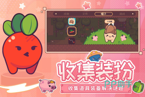 这款《大头菜菜历险记》手游的玩法有着冒险养成的趣味体验,我们需要控制着其中的角色进行移动,而且还要在这里去寻找和搭配上不同的道具,用道具去帮助你们闯关是没问题的,游戏内还可以前去进行解谜,体验不同的故事剧情表现出来的效果,这里买呢的互动要素是很多的呢。