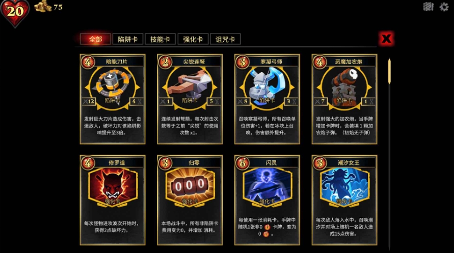 金币是游戏重要资源,用于购买卡牌、升级陷阱与技能,通过完成主线任务、击败怪物、探索隐藏区域获取金币,合理规划金币使用,前期优先升级常用基础陷阱,提升其伤害与触发几率,中期根据牌组策略,购买关键卡牌完善牌组,注意节省金币,避免在不必要物品上过度花费,此外留意游戏中其他资源,合理安排技能释放时机,确保在关键时刻有足够能量发动强力技能。