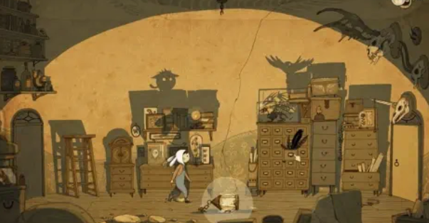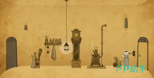 将左边的拉绳拉动一下,房间的灯掉下来之后立马点亮,让猫爬上左边的梯子,接着又跳到影子上。还可以让猫利用主角的影子跳到书架上面,主角走到中间的位置,把左边的抽屉关上,直接消除仙人掌的影子,最后别忘记要关掉右边的抽屉,消除鸟影。主角把仙人掌抽屉关掉之后去除影子之后又切回到原先的样子,只需要打开门就可以离开。
