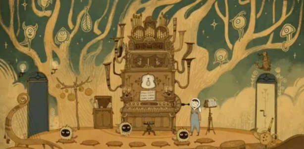 操控右边的操纵杆,可以弹出1764534的音符。让小猫直接跳上凳子,可以复制克隆猫,让第1个音符来到左边的树桩。接着拉动两次右边的操纵杆,可以复制三音符的克隆猫,走到右边第2个树桩上。还可以拉动右边的操纵杆,反反复复让小猫跳两次,就可以获得四音符克隆猫,一个走到正中央,一个走到右边。在完成这些操作之后,克绒猫马上就会演奏旋律,在听完之后就可以离开。