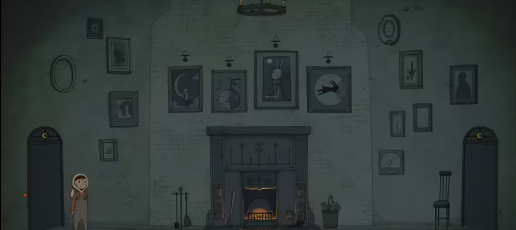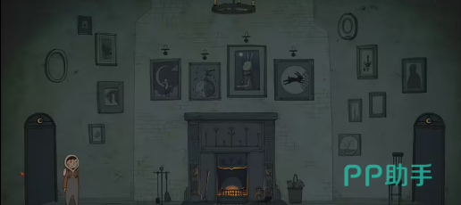 在壁炉上还可看到4个不同的画,玩家可以根据月相去找到对应的画。例如看到的是残月,残月图是左边的第1个,只需要点亮即可。正确点亮4张图之后就可以出门。