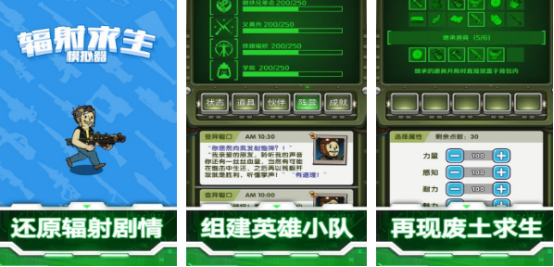 与辐射避难所整体的玩法大致相同,将故事背景设定在被辐射污染的末日世界,游戏场景营造出相当浓郁又独具特色的末日氛围,玩家将面临无尽的危机以及各种未知挑战。将在恶劣环境下采集木材以及矿石资源,利用工作台制作、弓箭以及枪械等不同的武器采集丰富的资源完成武器制作,与众多被辐射感染的生物共同对抗。