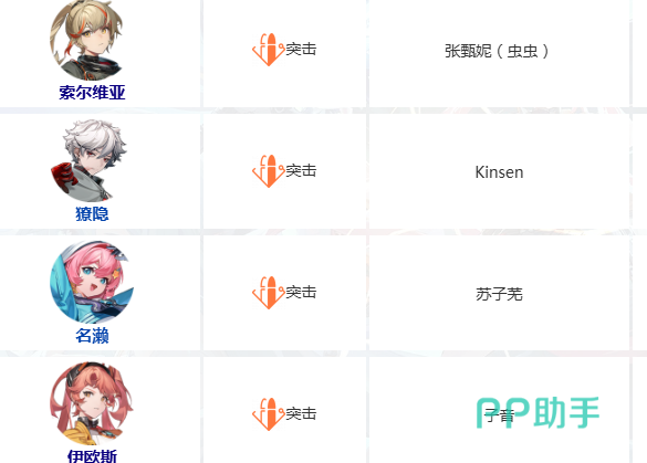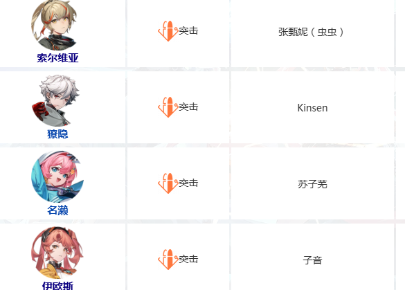 突击位共设五名可选角色:希、索尔维亚、獠隐、名濑、伊欧斯。每位角色拥有差异化武器配置、位移机制与爆发节奏,适配快攻压制、单点突破或迂回切入等多元战术场景。