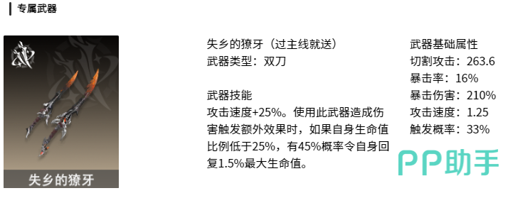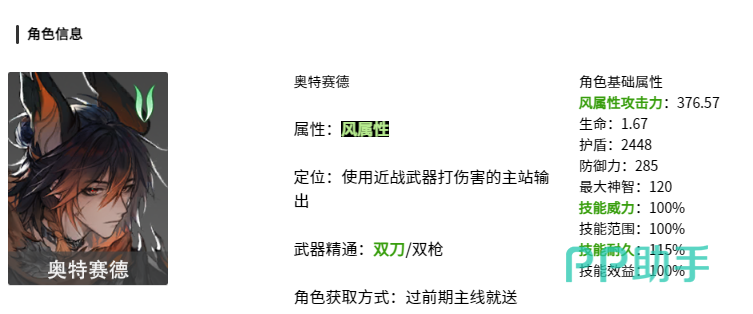 在众多刺客角色中,真正担得起“刺客之王”名号的正是奥德赛特。他隶属于夜航型小队成员,虽然自嘲为“带娃保姆”,但战斗风格极为凌厉。作为一名近战输出型角色,奥德赛特主攻风属性伤害,基础攻击力高达376.57,擅长近距离爆发输出。最吸引新人玩家的一点在于——他的专属武器无需额外资源投入,仅通过主线任务即可获取。该专武提供25%攻击速度加成,且当角色血量低于25%时,有45%概率恢复1.5%最大生命值,极大降低了前期培养门槛,无需纠结装备选择。