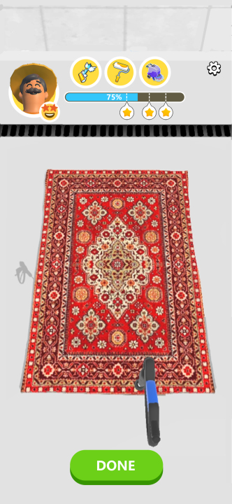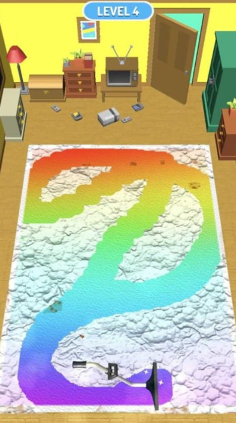 本作采用差异化任务设计:每一关的地图均呈现独特形状与污渍分布,系统下达的目标也各不相同。例如某关卡仅要求清除全部可见垃圾,而灰尘残留并不影响通关判定;此时玩家可完全跳过吸尘器功能,直接使用手指拖拽拾取杂物并投掷至回收点。若操作高效且剩余时间充足,再启用吸尘器进行二次清洁,还有机会提升单关得分上限。