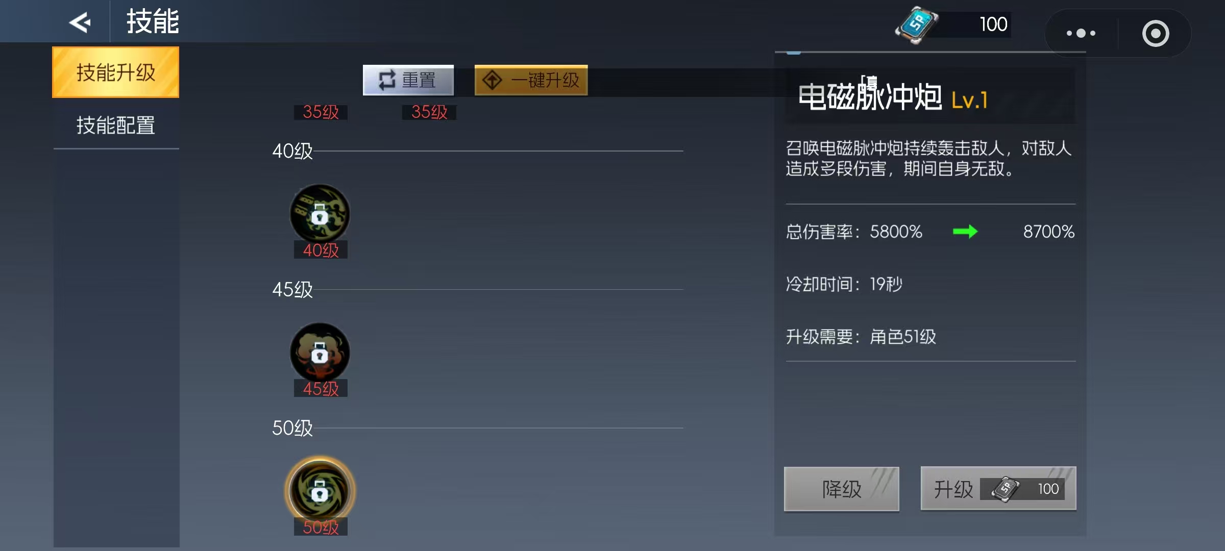 到了50级,新解锁的“电磁脉冲炮”无疑是神枪手最强力的终极技能,不仅拥有全职业技能中最高的伤害倍率,而且在释放过程中处于全程无敌状态,既是输出利器,也是关键时刻的保命手段。在技能栏位有限的情况下,建议舍弃诸如“机枪扫射”这类缺乏霸体、易被打断且功能性较弱的技能,集中资源培养上述关键技能,以最大化职业潜力。