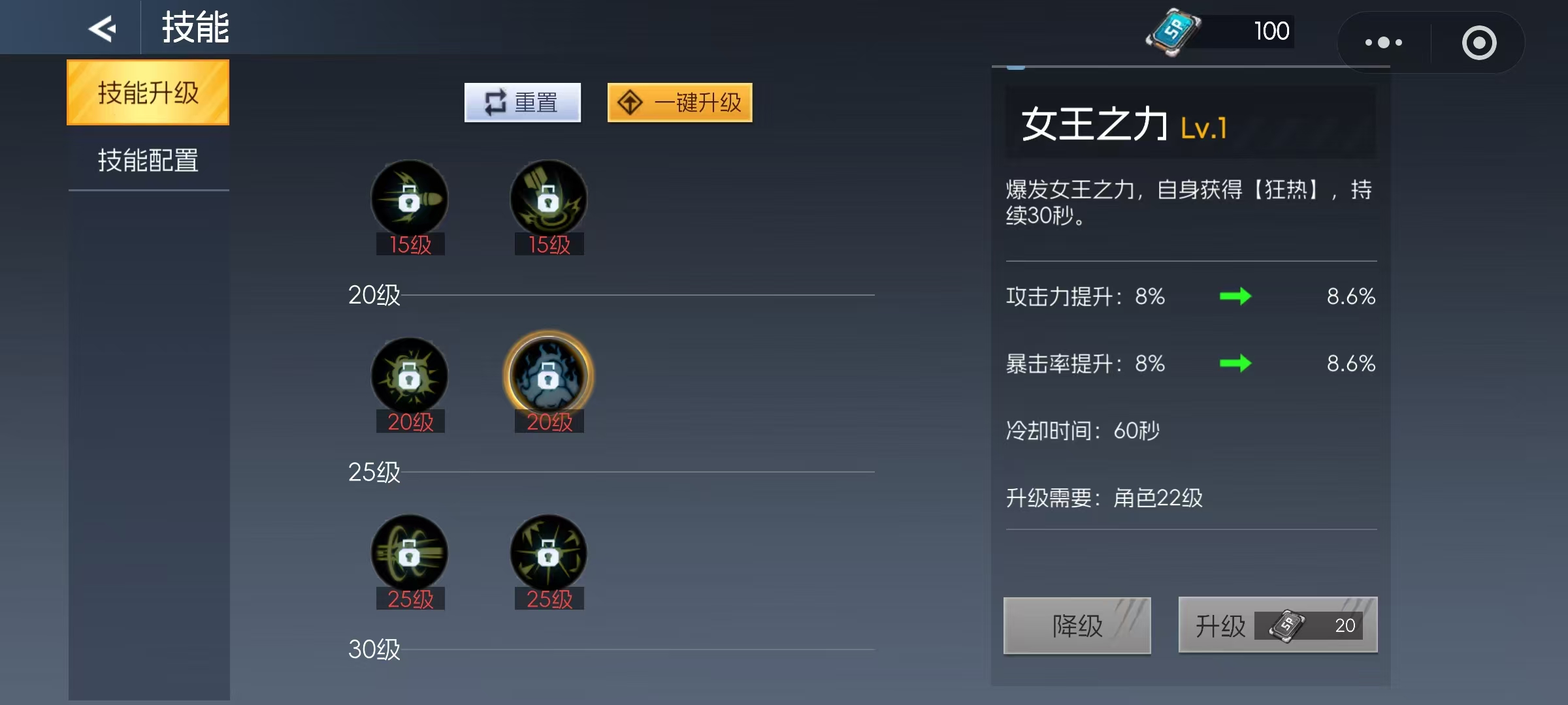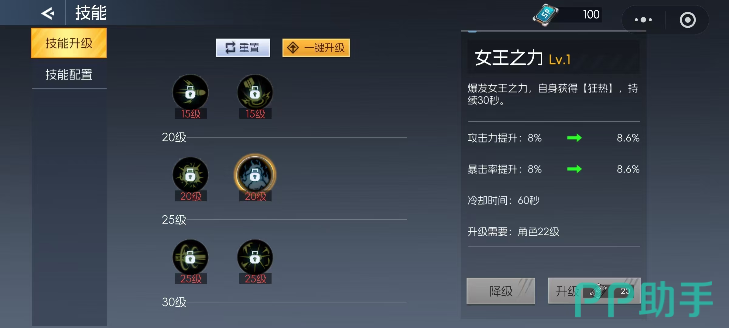当角色进入20至40级的成长阶段,“女王之力”成为必须点满的核心技能。该技能可在30秒内为角色提供狂热状态,显著增强攻击力与防御力,是打出高额爆发输出的重要保障。与此同时,35级解锁的“激光爆轰”也极具战略价值,作为无需引导且全屏锁定目标的脱手技能,能够在保证安全的同时持续输出。这两个技能与前期已强化的“引力弹”形成联动,既增强了控场能力,又提升了整体输出稳定性。