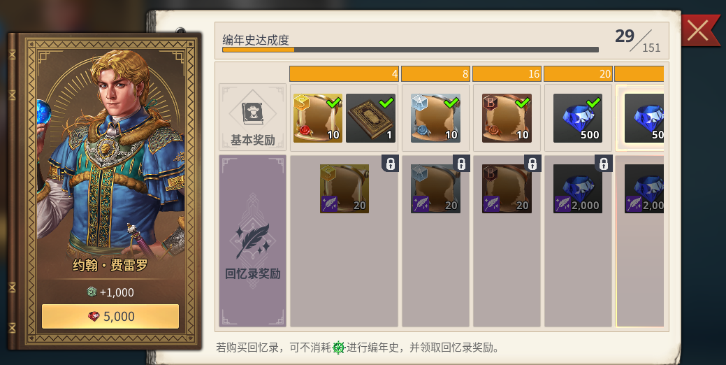 随着编年史达成度逐步提升,玩家可领取回忆录专属奖励,包括但不限于提督经验书、技能突破材料、稀有图纸及红钻返还等。所有回忆录均使用红钻购买,且购买前支持完整预览各阶段达成奖励明细,便于玩家根据自身资源状况制定优先级策略。