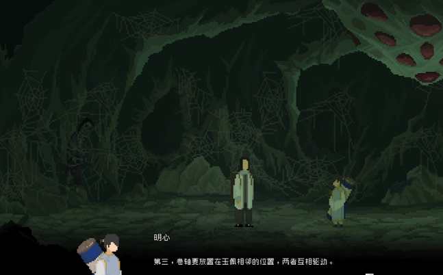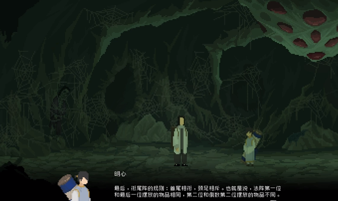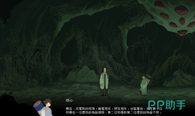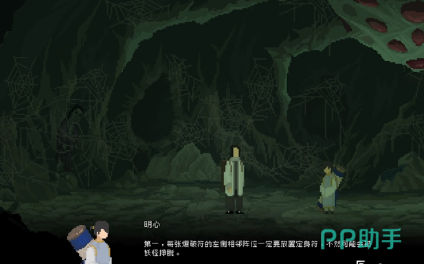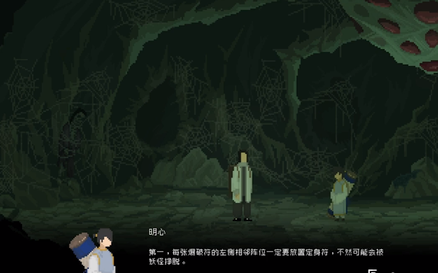 另外在布置时还需要注重于顺序,按照从左到右的顺序,第1个放定身符,第2个放爆破符,第3个放定身符,第4个放爆破符,第5个放驱魔卷轴,第6个放玉佩,最后放定身符。如果玩家能够按照这一个阵容放置好,接着用琵琶发出信号,玩家一边躲避蜘蛛精的攻击,一边朝着右边跑,就可以把蜘蛛精全部的消灭。
