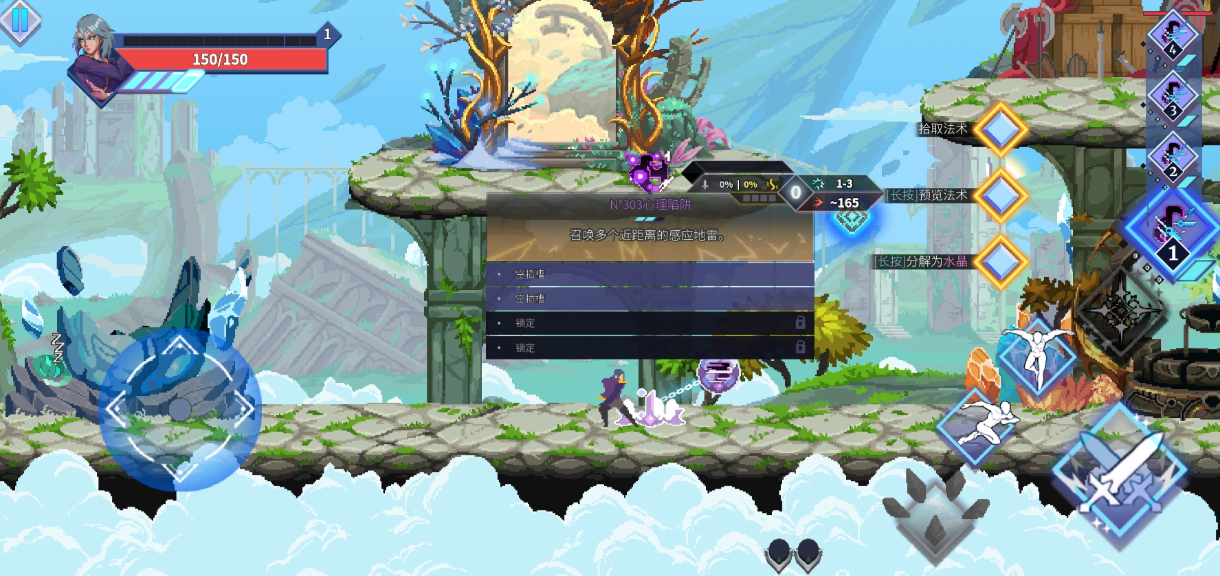 游戏内置四大初始角色:宝石姐、双枪弟、拳哥等,每位角色拥有独立技能树与战斗逻辑。玩家可自由搭配技能模块,自定义连招链路,并通过平A重置二段跳冷却的机制,实现空中冲刺、蹬墙跳跃等高机动操作,显著提升操作上限与实战容错率。
