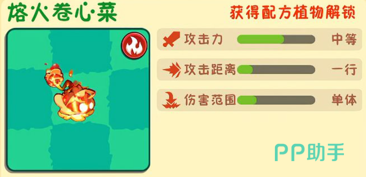 熔火卷心菜属于火属性远程植物,可在敌人出现时发射燃烧弹,对同一行的僵尸造成持续灼烧伤害;熔火荔枝每3秒发动一次攻击,释放带有爆炸效果的火系果实,附带灼烧状态;熔火萝卜伞可频繁拦截飞行类僵尸,耐久度高,是空中防线的重要支撑;岩浆玉露会对周围区域内的僵尸造成直接伤害,并能使相邻植物进化为火系形态,特别针对冰箱僵尸有显著克制作用。