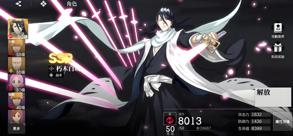 作为斩击体系中的核心输出之一,朽木白哉具备后台持续伤害能力,并能削弱敌方对斩系攻击的抗性。其被动技能一可在释放战场技后缩短战技冷却时间,同时下一次战场技的伤害会逐步提升;被动技能二则在角色处于后台时,提高所有斩系伤害。当战场技命中目标时,会叠加印记,每层印记都会降低敌人斩系抗性。