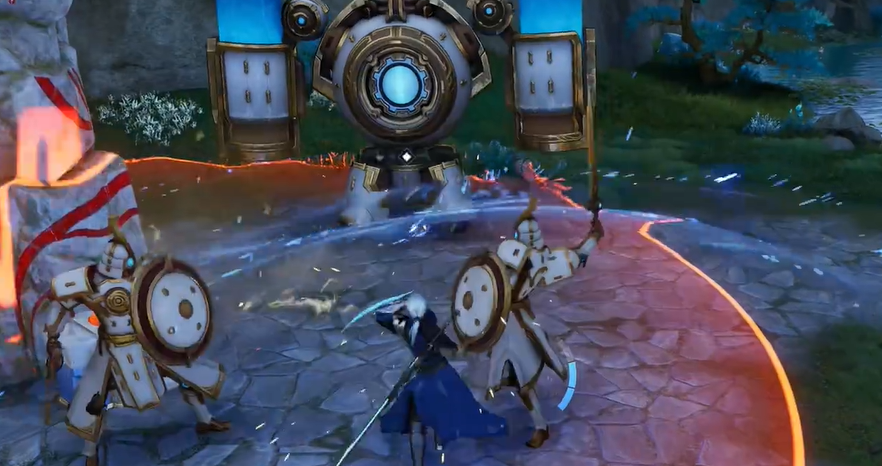 一技能“回旋之刃”具备地形互动机制:飞刃路径接触岩壁、立柱等场景障碍物后将发生折射,对首次命中的障碍物及后续路径上的敌人均造成伤害。合理利用地图结构,可绕过敌方前排实现侧翼突袭,形成多角度连击链,同时在命中多个目标后触发生命恢复效果,增强持续作战能力。