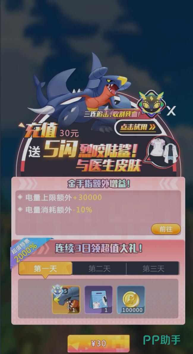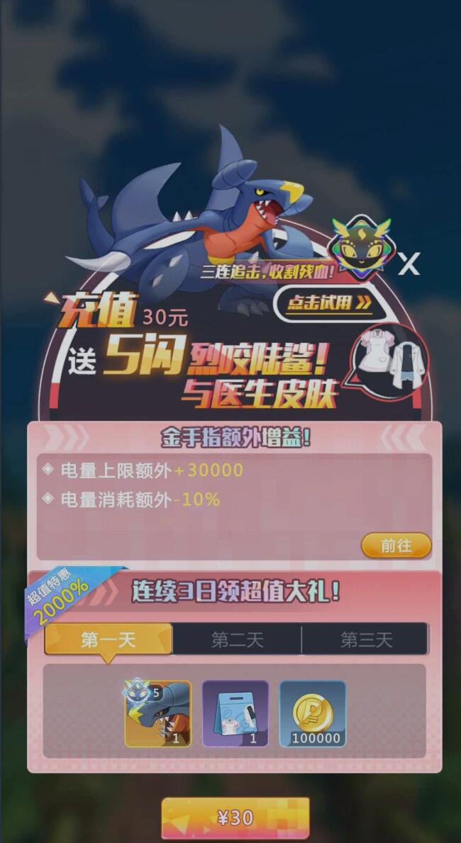 除首充外,30元充值档位同样具备实用价值,侧重提供高频刚需养成资源,如金币、经验药水等,适合用于批量提升辅助精灵或过渡期角色。此外,游戏内定期开放的嘉年华活动,常将充值行为与积分体系深度绑定,玩家完成指定档位充值后,可兑换限定精灵,例如人气极高的超级暴鲤龙,兼具外观辨识度与实战强度。