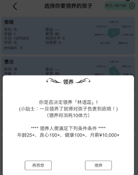 玩家将在这款游戏中体验最完整的模拟人生。在游戏里,玩家可以选择自己将要体验的家庭背景、教育环境、职业发展道路、感情生活等多种因素。体验普通人到行业顶尖学者的一生,还有各种随机事件影响玩家未来的道路,非常的刺激。