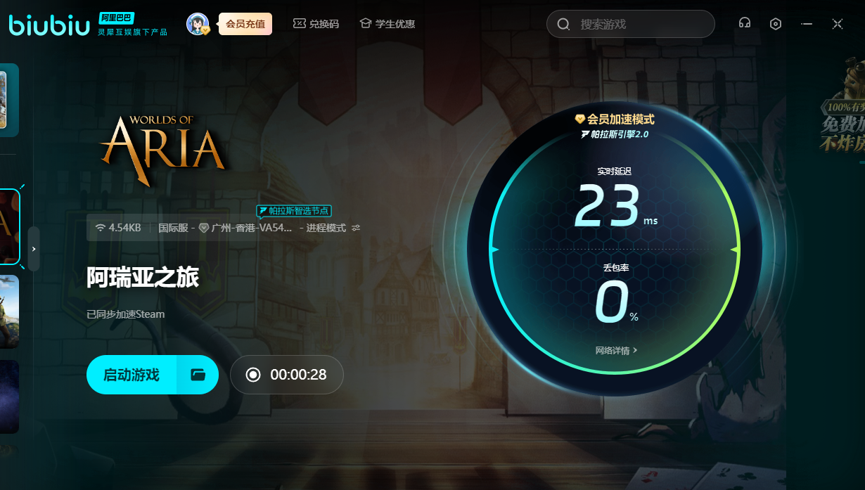 阿瑞亚之旅作为一款海外优质冒险大作,前暂时没有上线国服。我们想要体验的话,要借助biubiu,可远渡重洋来到新的世界中冒险。新用户的话可领取3小时的免费加速,试玩结束后,还想加速的话。新老用户可输入【biubiu不卡顿】,即可额外获得三天免费加速。若是大家开始冒险时太卡,便无法做出正确抉择,导致剧情走向坏处。这时可用加速器,提速过后便能正确闯关,避免失利。