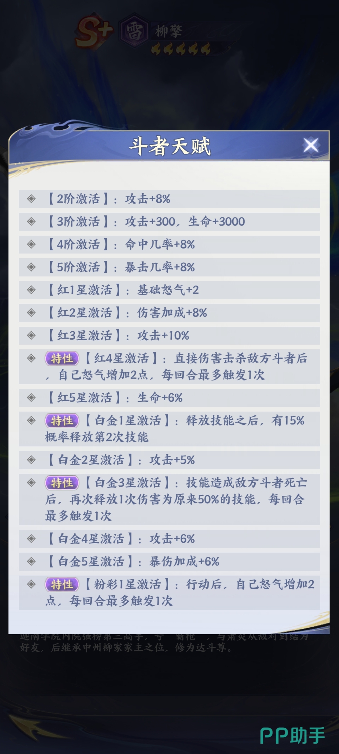 综合来看,柳擎在《斗破苍穹》手游中的强度定位清晰——他是兼具强榜资历、家族背景与实战效能的顶级雷系群攻角色。其“雷霆万钧、愈战愈勇”的战斗特质,既还原了原著中冷峻强势的人物内核,也赋予玩家极具张力的策略操作空间。合理搭配阵容与怒气管理,可最大化释放其在中后期团战与BOSS攻坚中的战略价值。