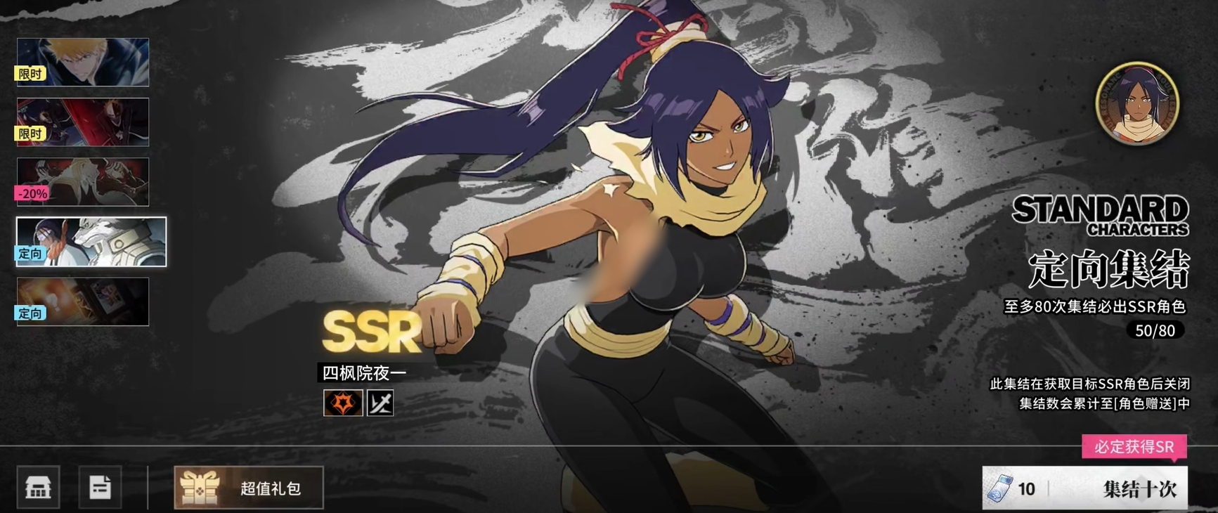 新增的定向卡池成为本次更新的一大亮点。该卡池独立于常驻池之外,抽取记录不会计入常驻保底进度。玩家可在其中指定一名常驻池中的SSR角色进行定向抽取,最多在80次内必定获得所选目标。需要注意的是,定向池为一次性使用机制,一旦成功获取选定角色,该卡池即关闭,不可重复开启。因此建议玩家优先在常驻池完成初始抽取(尤其是利用前期折扣资源),待已有基础阵容后再进入定向池锁定缺失的关键角色,从而高效组建完整作战队伍。