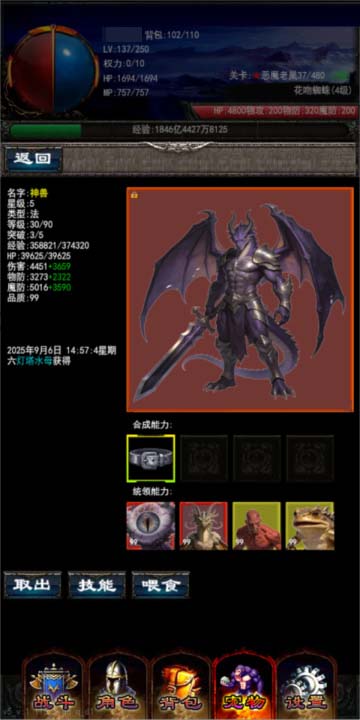 宠物系统同样具备策略纵深:全图鉴覆盖上百种《山海经》异兽原型,支持野外实时捕捉;战斗中最多可编入5只宠物协同出战,每只宠物拥有专属定位(如控制、治疗、爆发)及差异化技能组,通过属性克制、阵型站位与技能联动,实现战术维度的深度养成。