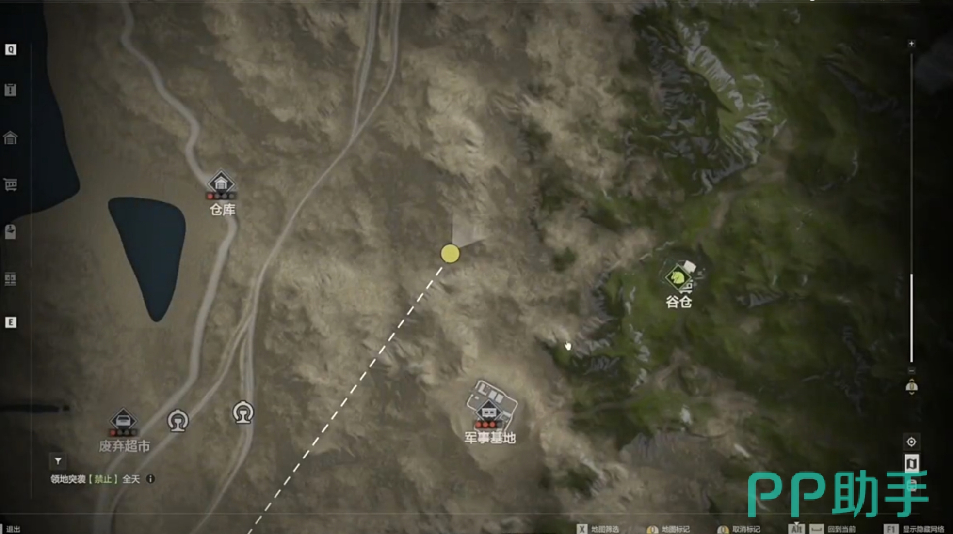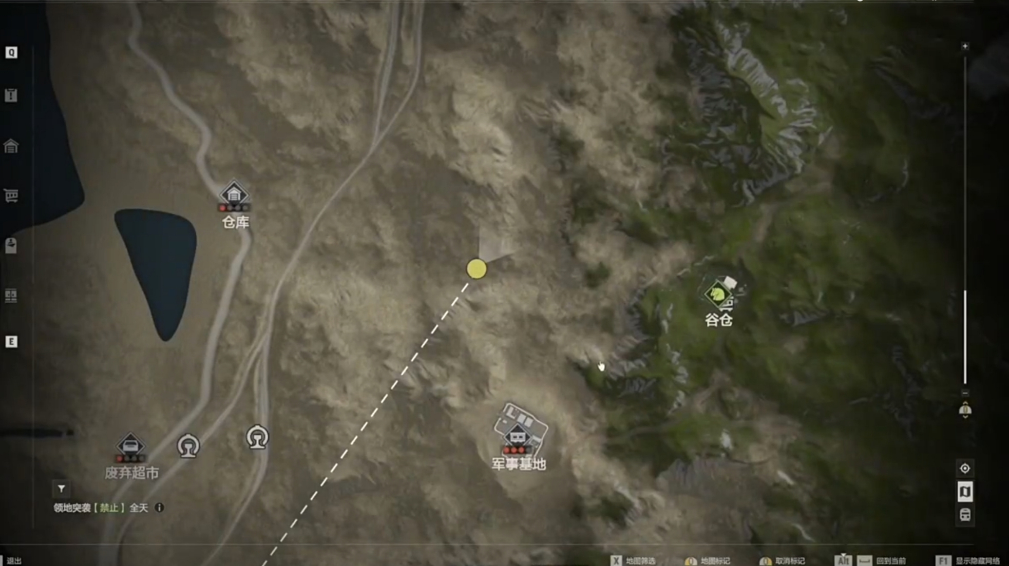 营地选址建议紧邻安全区图示位置,便于突发威胁时快速回撤。安全区内设有自动交易终端,支持以废料、木材、石矿等通用资源兑换进阶物品:包括远程钉枪、复合防化服、驮运马匹,以及可航行于近海的游艇与木船。需注意,所有载具与装备接入前必须完成威胁清除校验,否则将触发防御炮台自动锁定攻击。