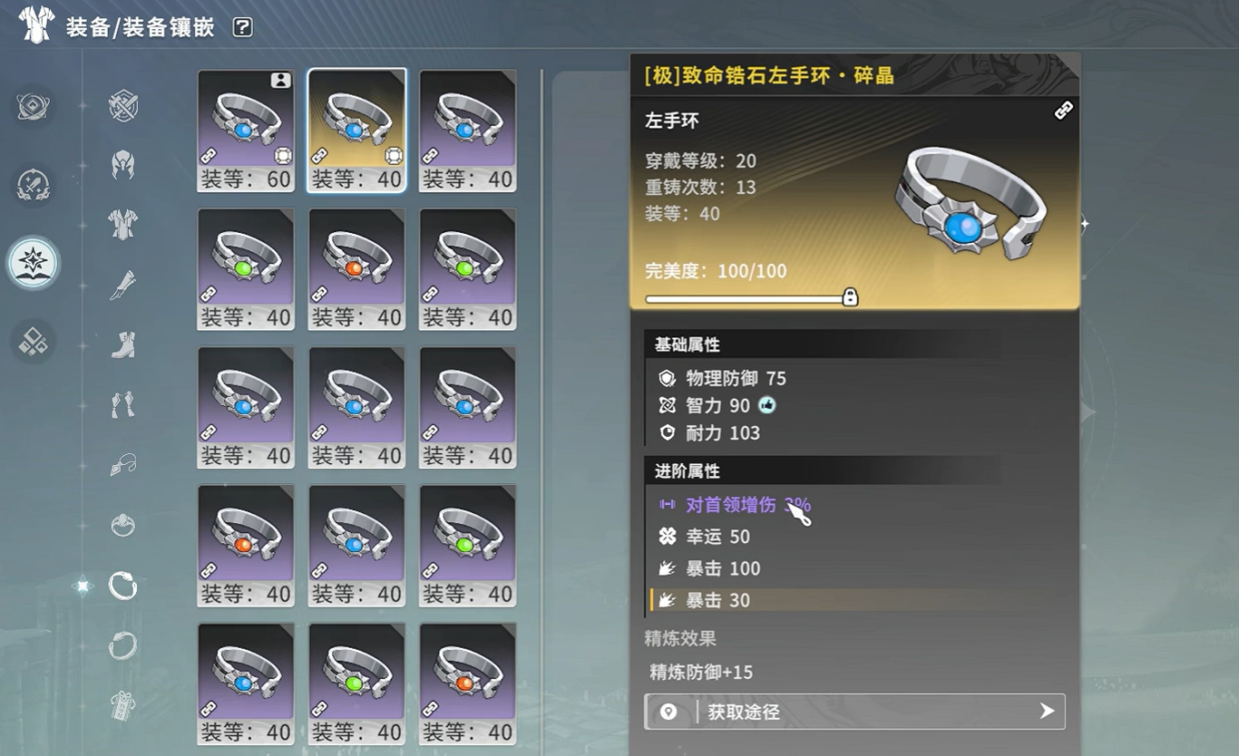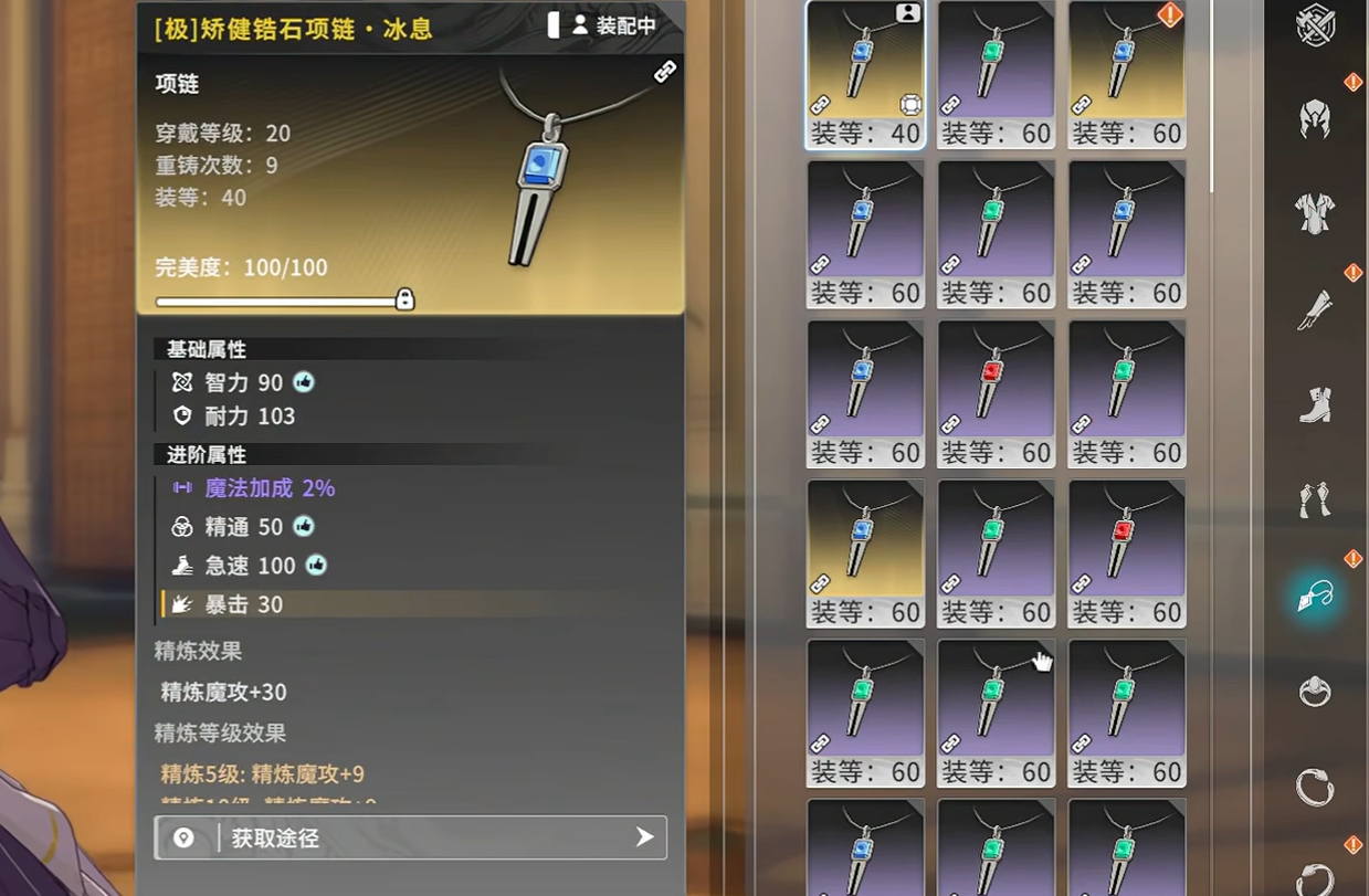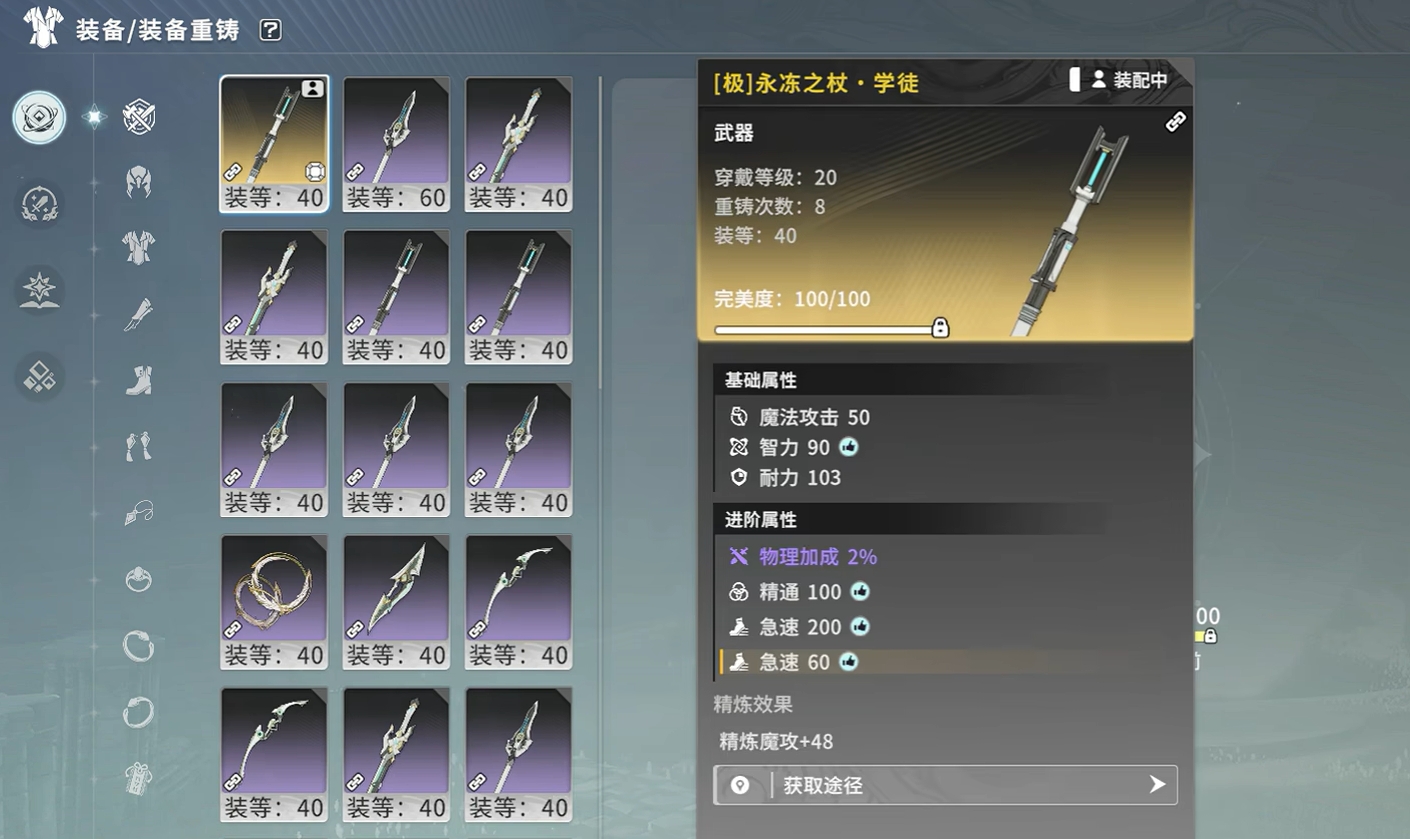 而冰矛流则不太需要急速词条,其核心的词条属性为暴击,副核心词条为精通,所以人们只需挑有这两种词条的装备给角色穿上即可,若是装备只有暴击词条而没有精通词条,且暴击词条的属性很高,也可先穿来过渡,等往后有更好装备时再换。