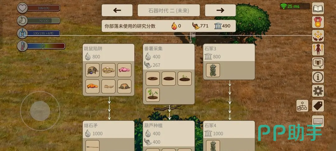 工具的制作应循序渐进,先从简易物品入手,如草碗可用于储存食物,对维持角色生存至关重要。随着进度解锁更先进的配方后,再着手制造高阶工具。同时注意角色状态管理,及时补充饥饿值、治疗伤势,确保每位成员保持良好状态。推荐新手选择低难度部落开局,便于适应机制并学习他人经验。
