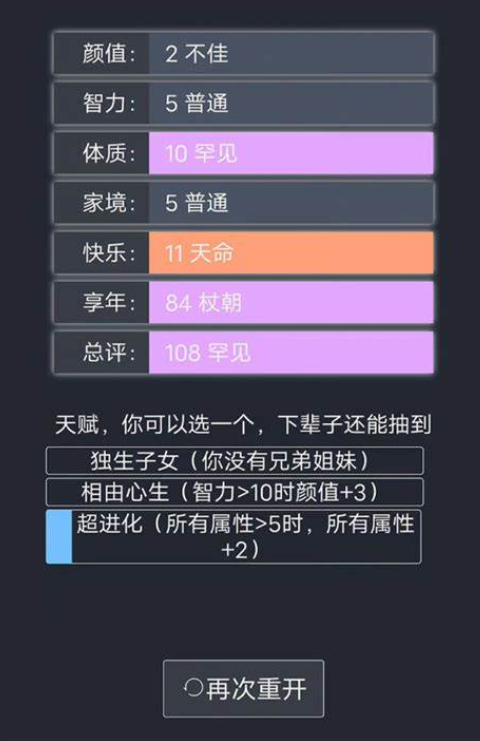 游戏里每个选择都是个分叉路口,选A可能当上CEO,选B说不定就流浪街头,全看你怎么玩。最过瘾的是,这里没有现实中的条条框框,你可以大胆尝试各种活法——今天当科学家搞发明,明天做明星走红毯,后天干脆隐居山林。上百种随机事件让每次重启都有新鲜感,就像开盲盒一样充满惊喜。这种自由折腾人生的快感,正是现实中很难体验到的。