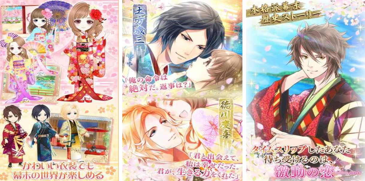 这是款由Furyu打造的女生主角恋爱换装类日式游戏,日式配音和和风的背景塑造均为本作亮点,你将穿越至日本幕末时代跟帅气小哥哥互动恋爱,个性鲜明的男主角任由大家选择互动恋爱,浓郁的日式和女性向元素都会让大家沉迷,背景樱花飘散极具浪漫氛围让恋爱手游粉丝沉浸,你也在虚拟游戏中与幕末男友展开互动吧。