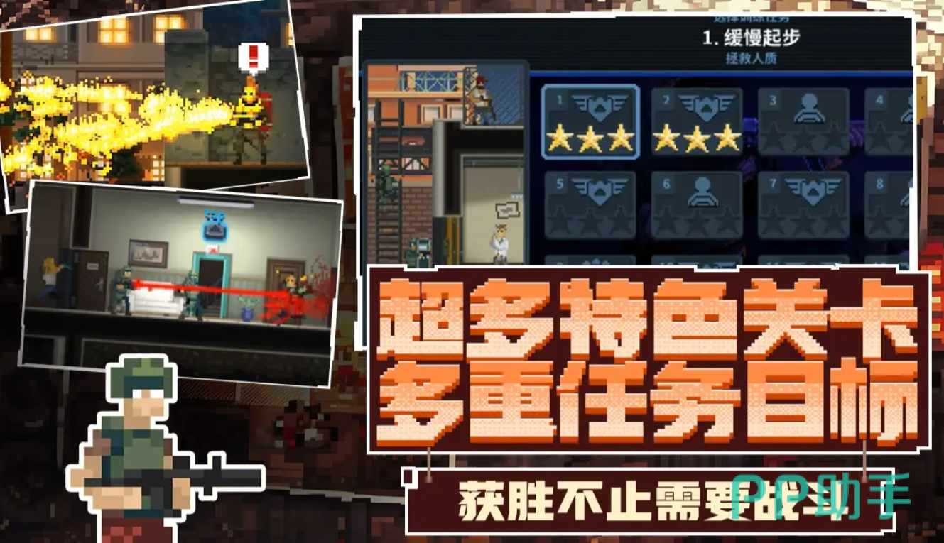 想要第一时间体验《破门而入行动小队》的紧张刺激玩法吗?这款融合策略与战术射击元素的像素风2D游戏,凭借其独特的反恐题材和多样化的角色设定,吸引了大量闯关类游戏爱好者的关注。游戏中提供了6种各具特色的职业角色,每位角色都拥有专属武器与技能机制,带来截然不同的战斗风格。