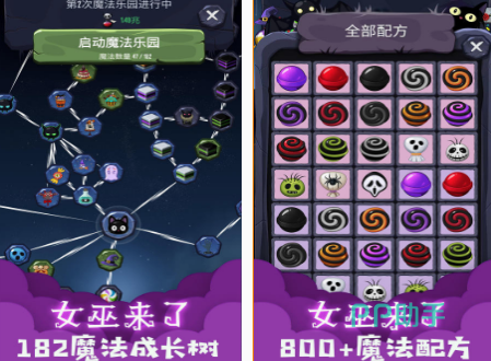 此休闲类型的游戏,同样也是以女巫这种恐怖的人物进行设计,也属于放置休闲类型的游戏。当倒霉的女巫遇到了耍糖的导弹鬼以后,开始走上了生产糖果之路。在制作的过程中,还要将的捣蛋鬼赶走以后,才能够在生产的过程中更顺利。只是在赶走的过程中,捣蛋鬼的数量会越来越多,需要玩家通过使用魔法搭配的方式,才更有机会拥有强大的糖果。