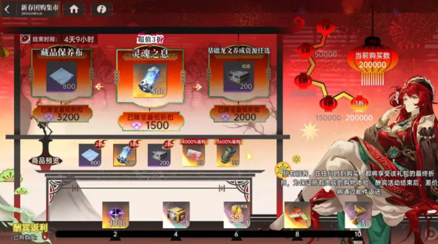 活动期间(2月11日—3月4日),专员可通过完成日常及限时任务获取战令积分,用于提升战令等级。每级晋升均对应固定奖励,解锁高级战令手册后还可领取“精选皮肤任选”与“招募资源任选”等稀有权益。同步开放的“新春团购集市”分为两期:首期为2月11日至2月18日,次期为2月18日至2月24日。各期限时上架多档团购礼包,折扣力度随参团人数动态提升;提前购入者将在活动结束后获得差价返还。