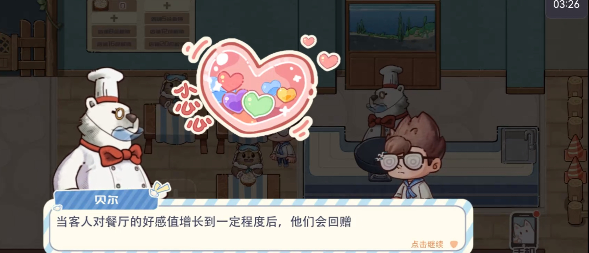 员工系统构成餐厅运营的神经中枢。每位员工拥有独立属性面板(如“出餐速度”“亲和力”“抗压值”),需根据岗位需求精准匹配——例如收银岗优先选择亲和力≥75的员工,后厨则侧重出餐速度与抗压值。通过赠送礼物、完成专属对话事件可提升好感度,当好感度达60/100/150时,将分别激活被动技能、解锁专属剧情及获得属性加成。此外,每72小时可对单名员工进行一次培训,每次培训固定提升其基础属性3点,建议前期集中投入于厨师与服务员两类核心岗位。