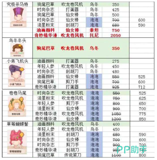在游戏当中小编觉得比较好收集的发型是淘气麻花辫,通过奇妙精华油和刮胡刀,或者是狗尾草与传说菜刀,或者是流星粉末与传说菜刀,选择设计师为泡泡必会出淘气麻花辫。
