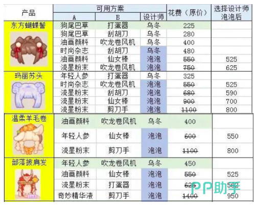 在发型收集上需要有a元素和b元素来进行相互搭配,如东方蝴蝶结就需要利用狗尾草和打电器或者是油画颜料和吹龙卷风机,当然在选择不同原料时还需要正确的设计师选择,而且正确的设计师选择可以让玩家降低相应的费用,减少材料的浪费,在发型设计师选择上可以看一看图片上的文字,如果写泡泡就选择泡泡,如果是托尼老师就选择托尼老师。