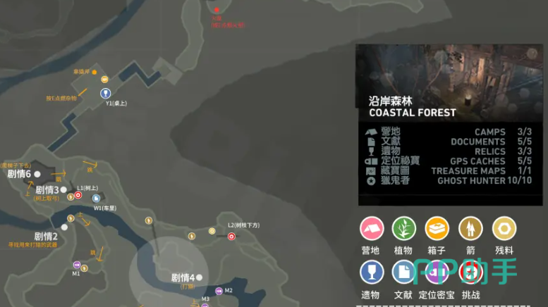 古墓坐标位于沿岸森林区域,具体入口临近地图东北侧林间坡道。建议玩家完成前期“沉船残骸”任务后再前往,此时角色已解锁基础攀爬与弓箭操作。入口为一处被藤蔓半掩的岩缝洞穴,外观隐蔽但无锁闭机制。进入后需立即左转,前方可见倾斜木板作为临时踏板,踩踏后向上攀至第二层石阶平台,此处即为首个解谜起始点。