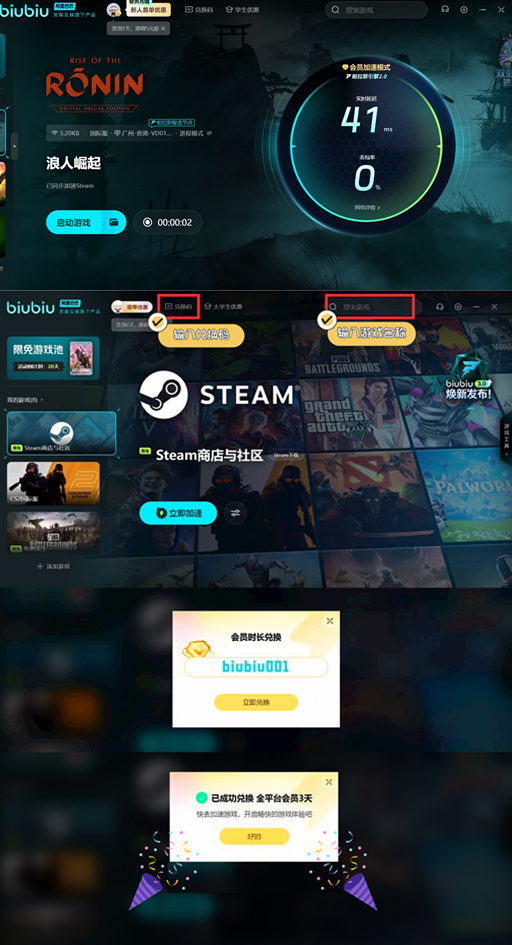 喜欢这款游戏的朋友都可以及时的下载,不过作为一个大制作的游戏,可能在下载过程中速度比较慢,不想浪费时间等待可以选择一款加速器。现在为了回馈新老用户,加速器就有免费加速时长可以领取。新用户有一个3小时的新手礼包。+通用兑换码【biubiu001】72小时,可以免费75小时。