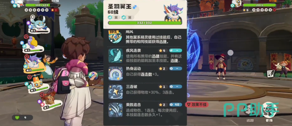 阵容构建中,圣羽翼王作为核心主力不可替代。其关键技能“热身运动”为必学项,可通过月牙桥或望风半岛的露天挑战获取,此技能可在战斗初期提供重要增益状态,为后续连击打下基础。
