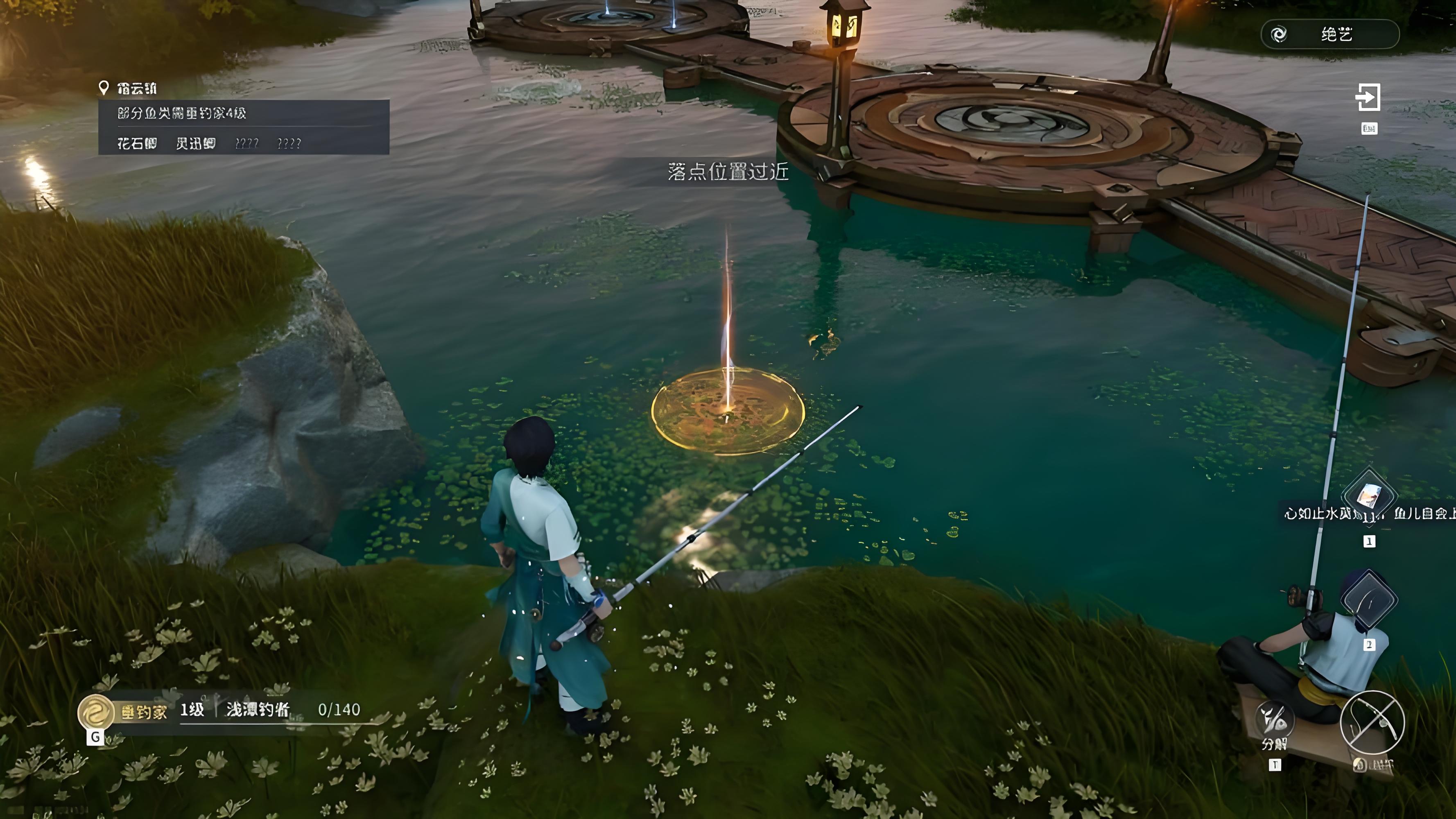 钓鱼系统的开放门槛极低。玩家只需推进主线至“霜云之行”阶段,即可接取NPC发布的“垂钓之道”引导任务。完成该系列教学后,全地图水域垂钓权限永久解锁。新手无需前置资源积累——系统赠送初始鱼竿与基础鱼饵,首站推荐前往稷下新手水域直接开钓。整个玩法围绕三大核心资源运转:精力(单次垂钓消耗1点)、鱼饵(影响目标鱼种出现概率)、渔具(决定成功率与稀有鱼捕获率)。精力每10分钟恢复1点,每日凌晨自动清空并重置上限,确保可持续参与。